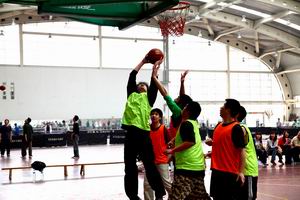 今年的篮球赛首次采取了先报名后抽签的比赛方式,南北区域的队员混合组队,没有了南北对抗,但一样有竞争,龙虎两队的队员都在为争夺 “中亦杯”挥洒汗水。