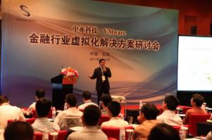 2011年5月25日,中亦科技携手全球桌面到数据中心虚拟化及云计算解决方案领导厂商VMware公司,举办“中亦科技&VMware金融行业解决方案研讨会”,来自银行、基金、证券、保险的60多位IT信息技术部门的领导和技术专家齐聚一堂,共同见证了此次盛会。 此次研讨会,中亦科技研究院高级产品经理蔡明、VMware资深技术专家与金融行业的IT技术部门的领导和专家一起,探讨如何制定符合金融行业的虚拟化部署策略,如何搭建基于虚拟化技术的IT基础设施平台,以实现技术改造与管理体系改革相适应,软件与硬件相结合,投入与收益的最佳平衡。