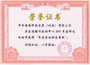 在交通银行数据中心2011年度供应商的评选中,中亦科技荣膺2011年度最佳供应商 。