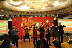 随后,来自公司各部门的演员们为大家表演了精彩纷呈的节目,情景喜剧、小品、舞蹈、歌曲串烧……一个个节目不断将晚会推向高潮。节目中穿插的游戏、抽奖,更是让大家体会到了欢乐和激情,联欢会气氛热烈,其乐融融。作为联欢会的一部分,演出后举行了新年聚餐。晚宴上,大家推杯换盏,侃侃而谈,同事们在斛光交错中相互问候,彼此交流,晚宴在轻松愉快的氛围中落下帷幕。