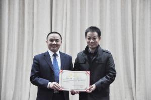 授牌仪式上,中亦科技总裁田传科先生向2013级“中亦科技班”同学代表授牌,并接受了杨晓晖书记“教育实践基地”授牌。王浩业副书记代表学院向中亦科技副总裁刘强先生颁发了“中亦科技班”课外班主任的聘书。