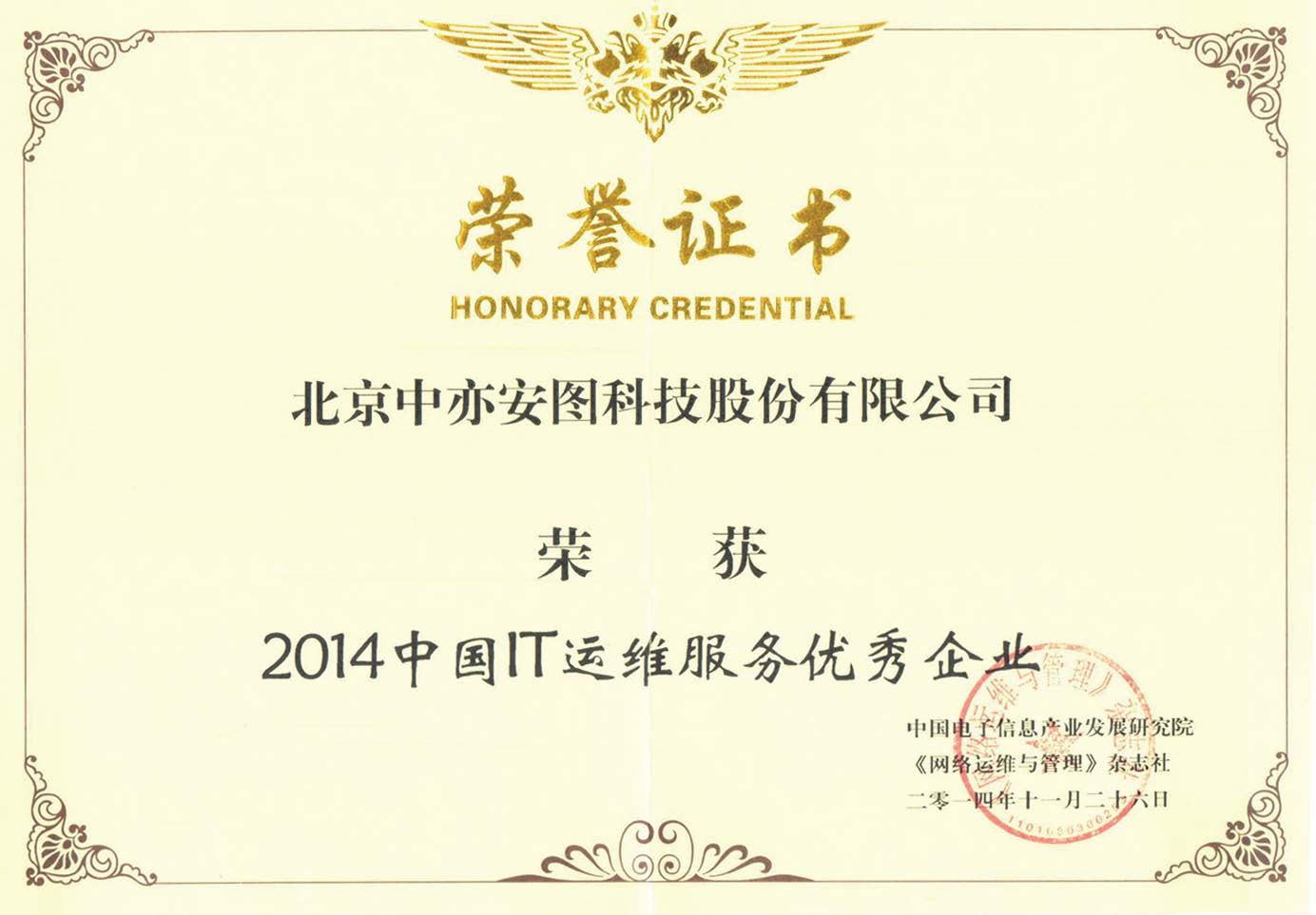 北京中亦安图科技股份有限公司(简称:中亦科技)作为我国IT运维服务领域的领先企业,荣获“2014中国IT运维服务优秀企业”。