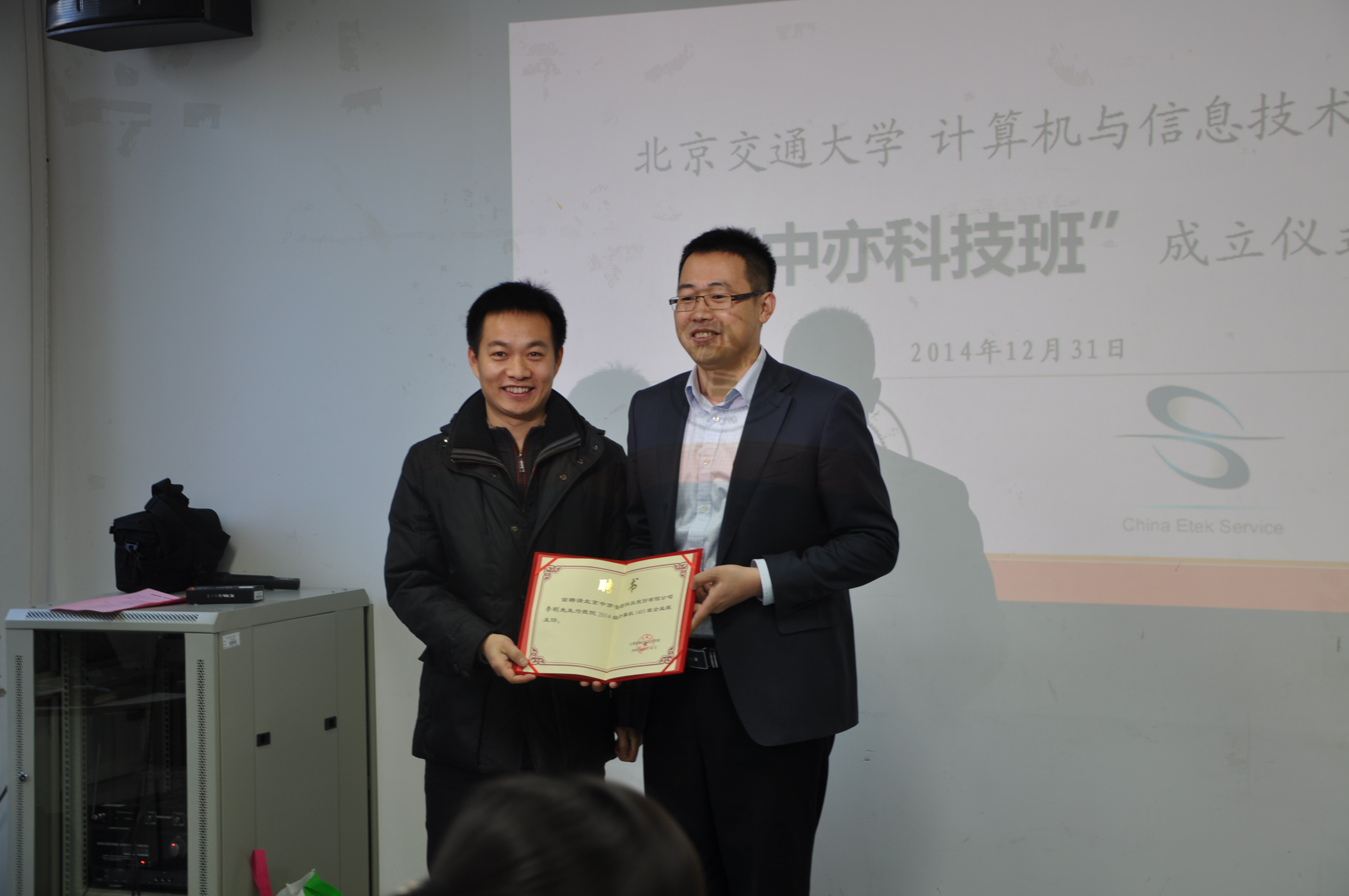 据悉,自2013年第一届中亦科技班成立以来,中亦科技与北京交通大学计算机与信息技术学院开展了卓有成效的校企对接合作,收效良好。中亦科技通过邀请共建班级同学实地参观、进行业务讲解、上机操作等,使同学们对于所学专业有了更加深刻的认识和了解。同时,在人才招聘、科研合作等方面,学院也给予了公司大力支持。