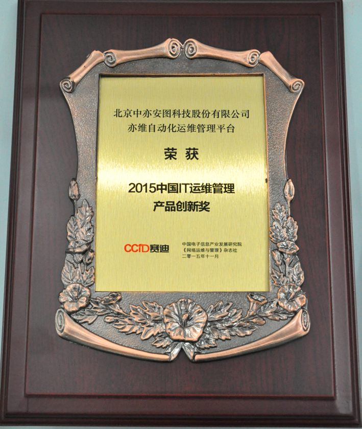 中亦科技)开发的国内首款自主自动化运维平台软件——亦维自动化运维管理平台(EVO-AIMS),荣获“2015中国IT运维管理产品创新奖”。