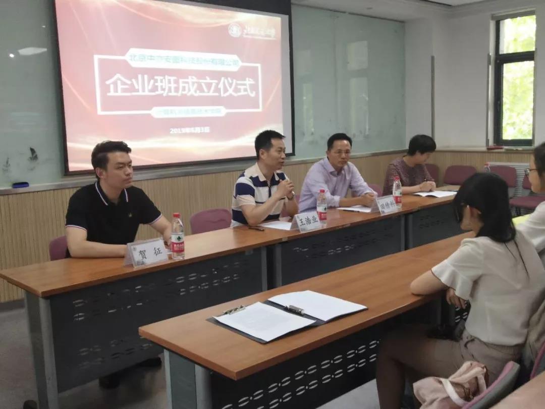 6月3日,北京交通大学计算机学院2018级中亦科技班成立仪式在北交大第九教学楼会议室举行。中亦科技总裁田传科、北京交通大学计算机与信息技术学院党委副书记王浩业、中亦科技人力资源总