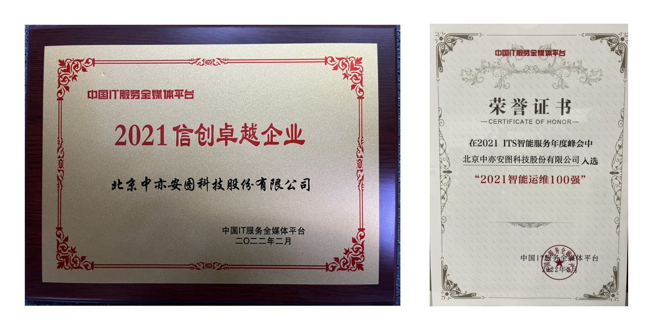峰会期间,2021-2022年度ITS智能服务相关大奖正式公布。北京中亦安图科技股份有限公司(以下简称:中亦科技)荣获“2021信创卓越企业”与“2021智能运维100强”两项大奖。