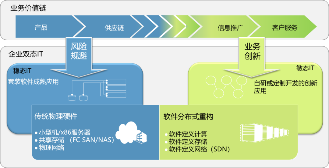 对此,中亦科技基于服务于包括金融业在内的众多大中型企业的经验积累,以及来自国内外多家知名科技企业的技术专家组成的高质量服务队伍,以双态IT理论为基础,通过充分理解客户业务变化和应用特性,基于稳敏两态的业务特点制定不同的IT系统基础架构。从而为企业设计更加贴合业务、更适合业务发展的IT系统基础架构,实现技术与业务的和谐匹配。