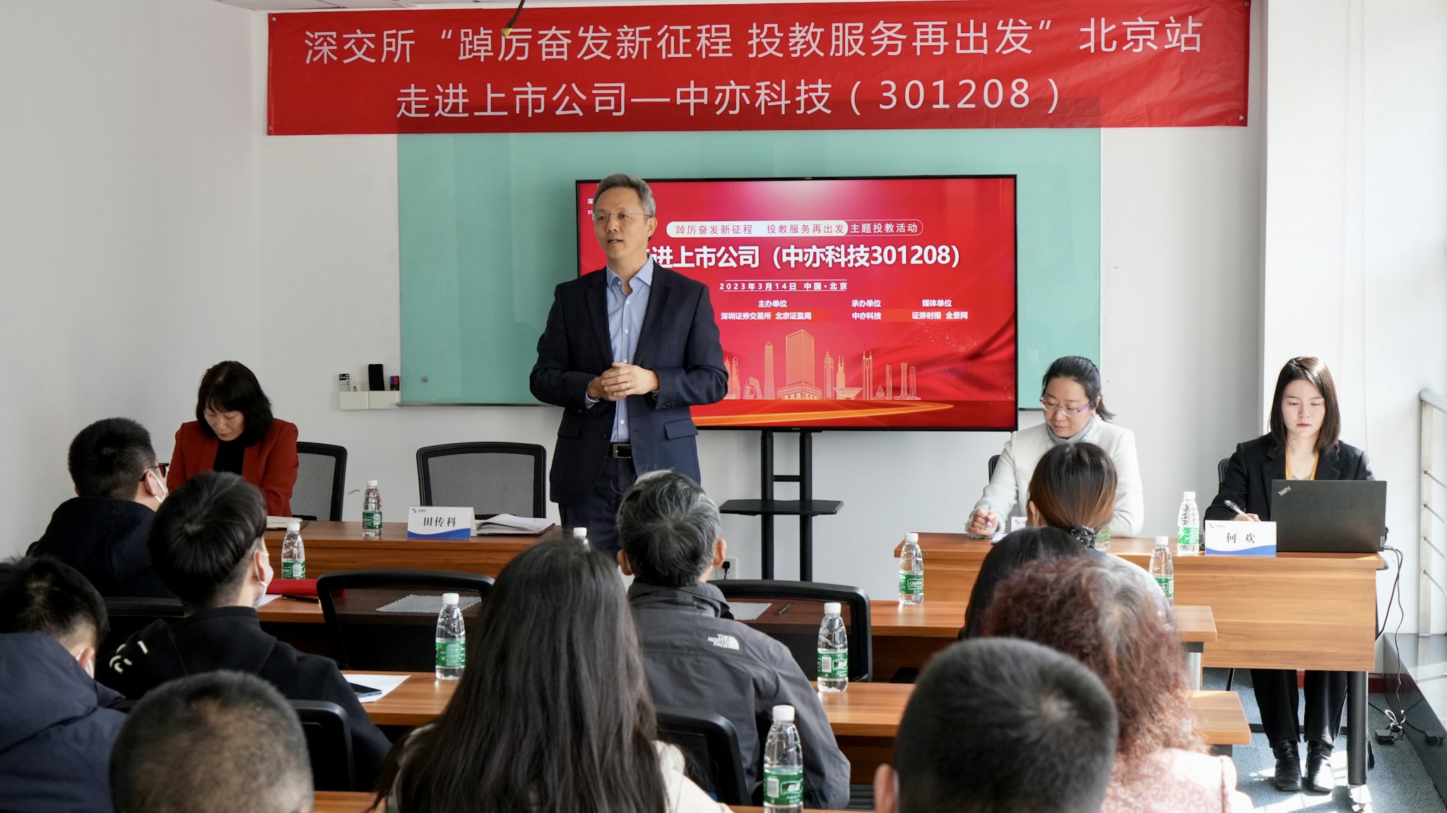 2023年3月14日,由中国证监会投资者保护局指导,深圳证券交易所、北京证监局主办,北京中亦安图科技股份有限公司承办(以下简称:中亦科技),证券时报、全景网支持的深交所“踔厉奋发新征程 投教服务再出发”主题投教活动走进中亦科技。此次活动以“全面注册制 改革向未来”为主题,聚焦创业板注册制上市公司,引导上市公司积极开展投资者关系管理工作,畅通上市公司与投资者双向沟通渠道。深圳证券交易所投资者服务部老师、中亦科技董事兼总经理田传科、副总经理兼财务总监张爱红、副总经理兼董事会秘书乔举,以及国信证券、银河证券、中信建投工作人员以及中小投资者、媒体代表等人共同参与此次活动,并就投资者关心的问题进行深入互动交流。