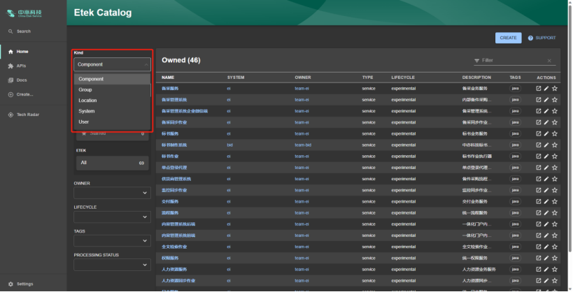 我们认为开发者平台可解决上述问题。经研究,中亦一体化团队选择 Backstage 作为平台。几个月后,基于 Backstage 的开发者平台上线,具备以下功能。
