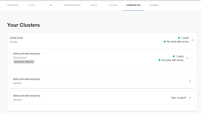 通过 Kubernetes 界面,可以看到组件对应的 Kubernetes 资源的状态: