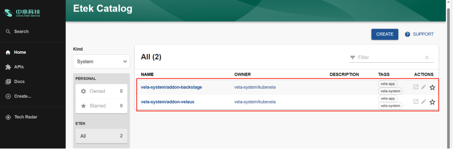 通过 KubeVela 和 Backstage ,我们将新应用与遗留应用在同一个视图里展现了出来。