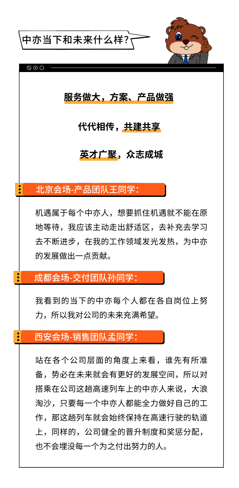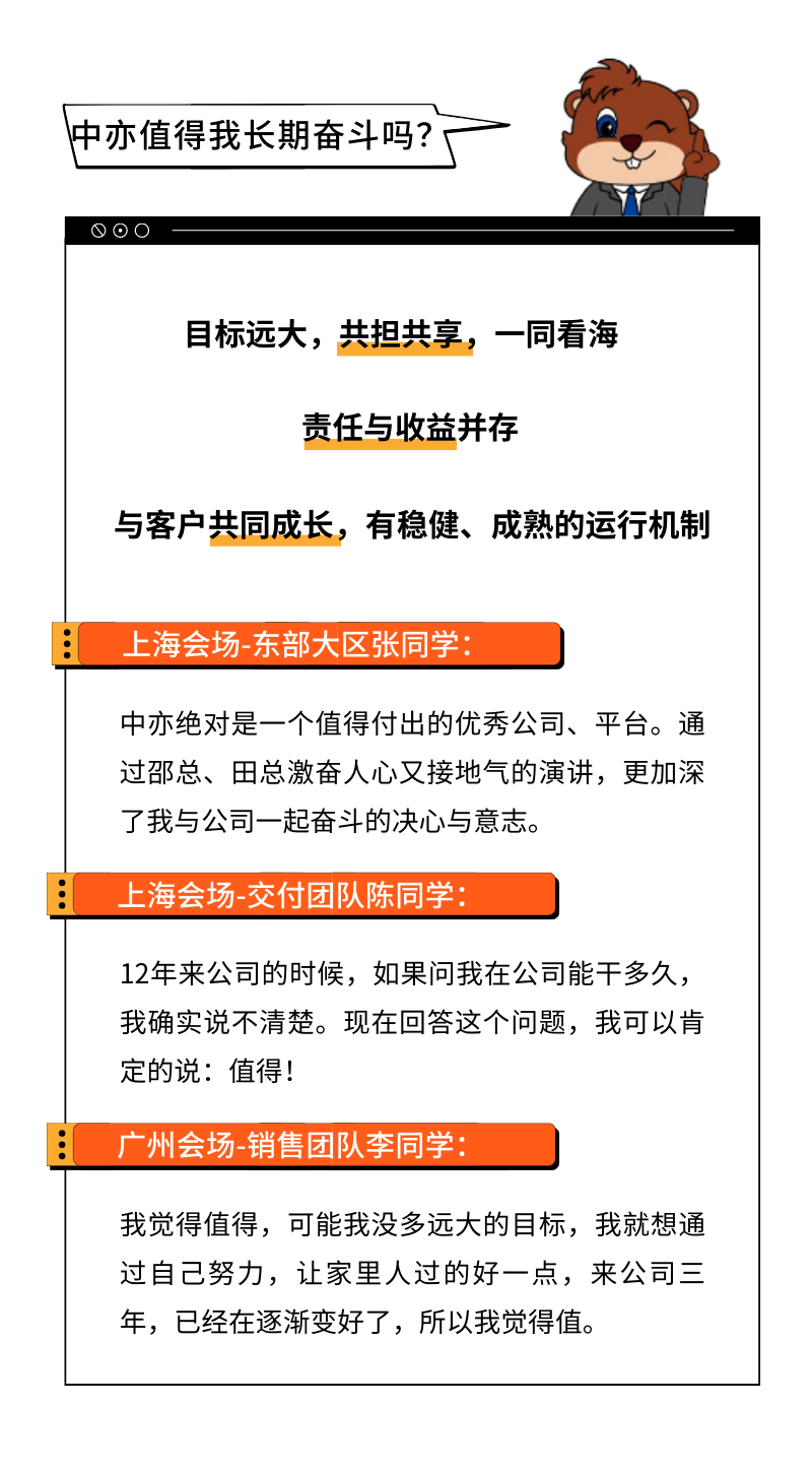 自2005年成立以来,“团结一批人,干成一番事业”中亦的创立初心从未改变,“英才广聚 众志成城”是本次年会的主题,也是2023年的关键词。中亦始终愿意与实干奋进者,共建共享,也始终欢迎志同道合的伙伴,一路同行。