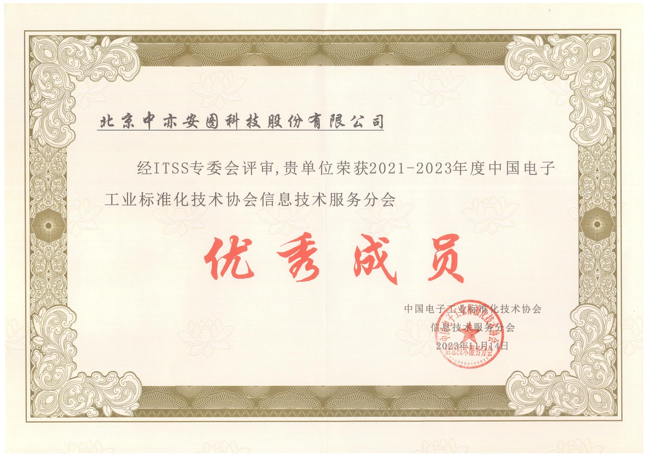 中国电子工业标准化技术协会信息技术服务分会(简称“ITSS分会”)于2023年11月14日至17日召开2023信息技术服务标准(ITSS)会议周。为进一步推动信息技术服务标准的制定和应用推广,会上对在信息技术服务标准研制工作中持续参与并做出突出贡献的单位进行了表彰。中亦科技作为ITSS分会副会长单位,积极参与运行维护、ITSS工具应用推广组的标准编制和推广工作,凭借在标准工作中的突出贡献,获评“2021-2023年度ITSS分会优秀成员”。