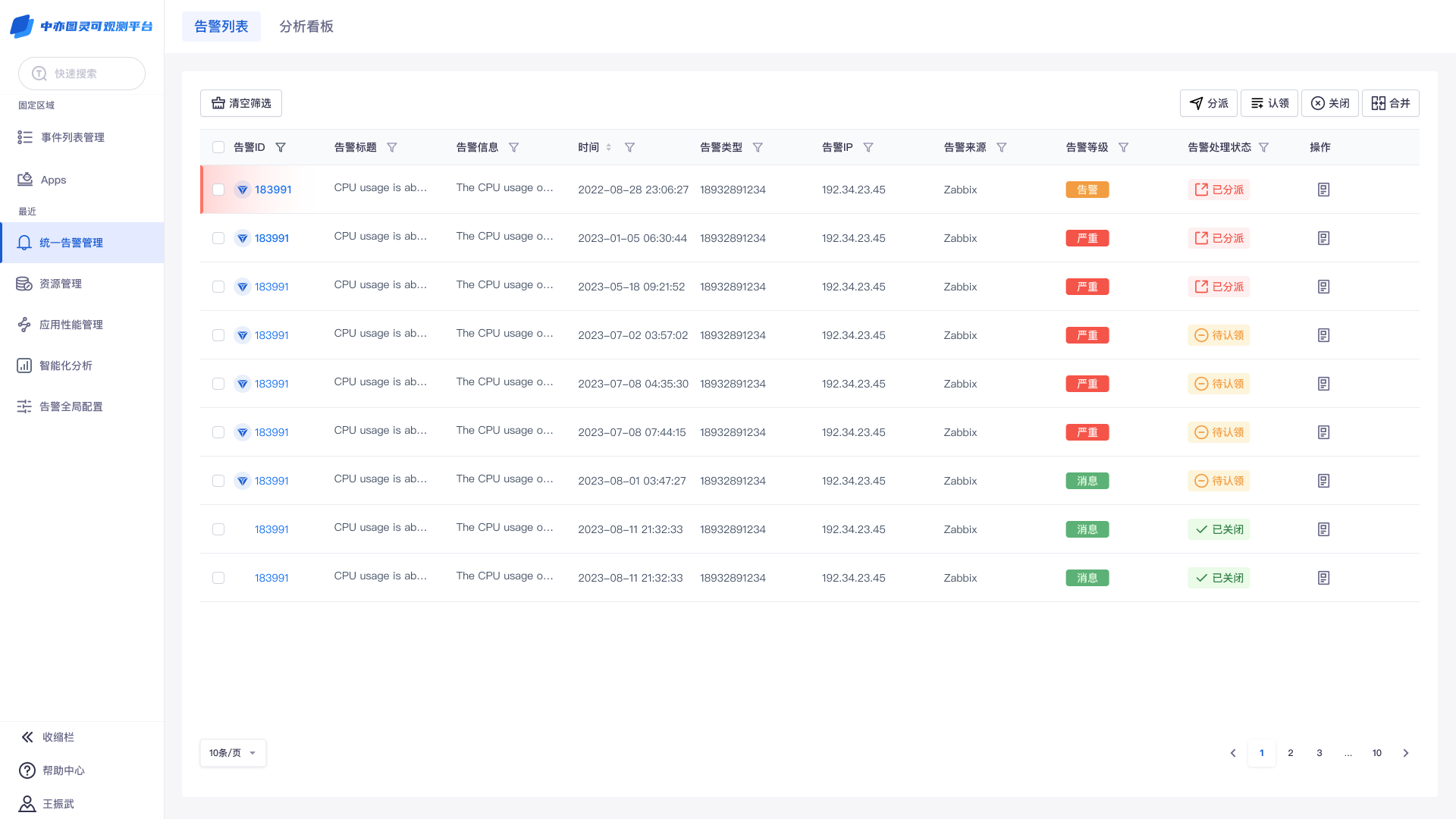 1. 统一告警管理