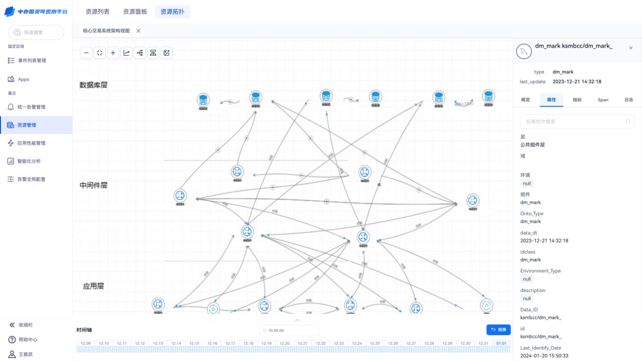 平台支持融合配置、性能、链路等多源数据,并可根据需求自定义创建业务架构、应用架构、基础架构,同时可根据架构视图进行切片,进一步详细了解架构中的组件与关系,以提升用户对IT整体架构的认识。