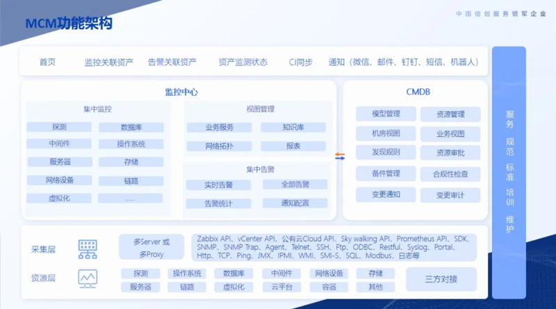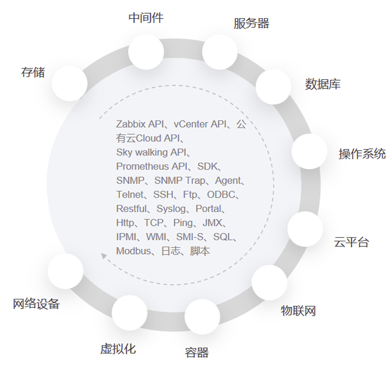 “中亦乐维监控产品”支持广泛的数据采集范围,能够覆盖从存储、网络设备、服务器,到操作系统、中间件、数据库、虚拟化、云计算、容器、物联网、动环设备等各个层面的实时数据采集。平台具备强大的自动发现能力,能够识别和纳管全类型异构IT资源,进而通过一个完善的指标体系,重新定义了资源监控的维度。