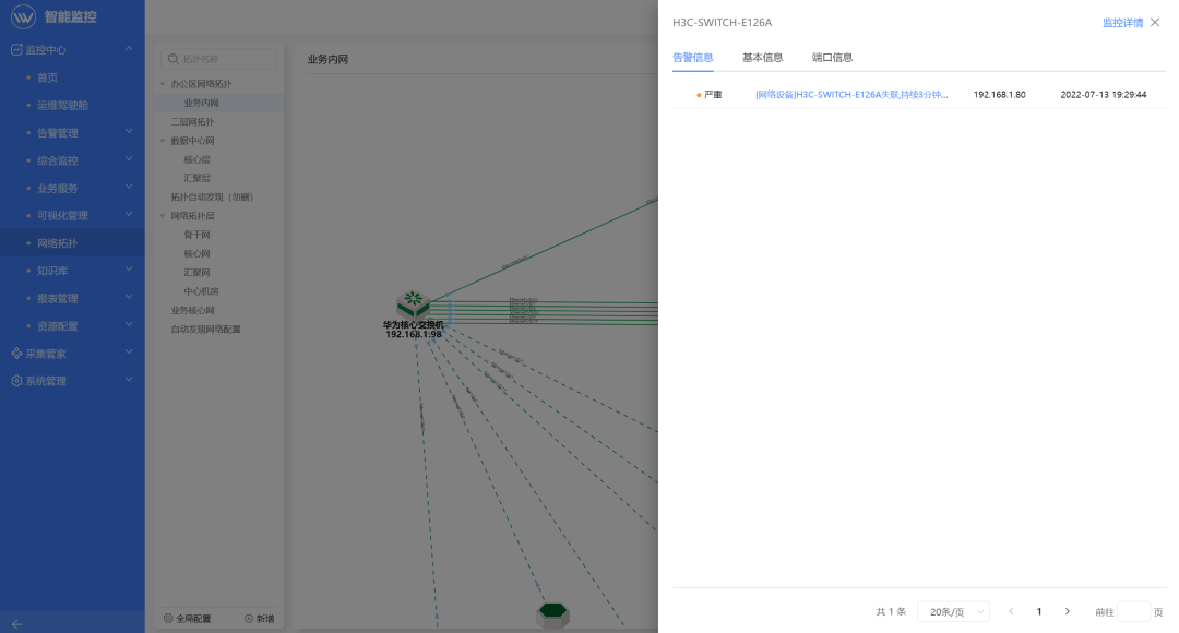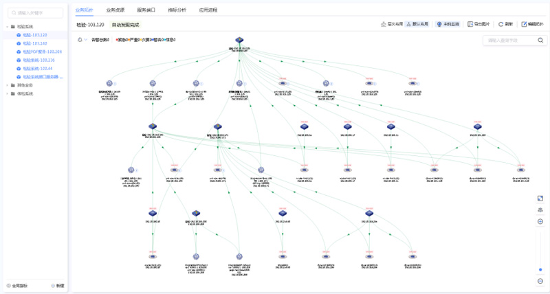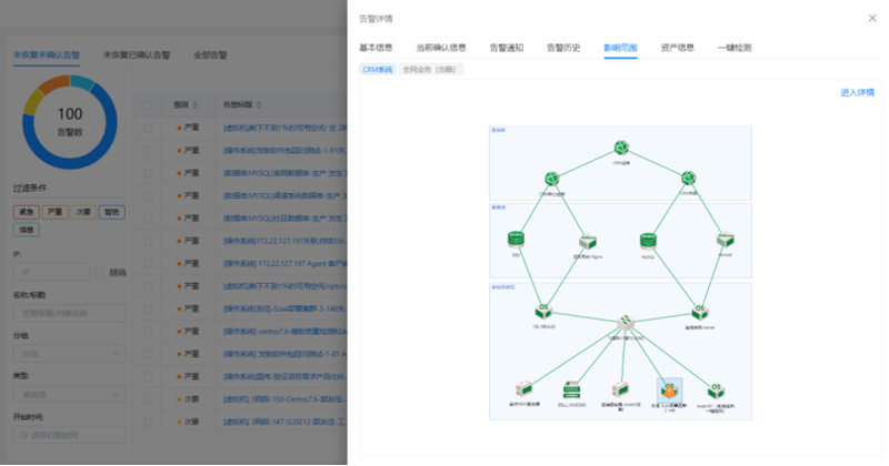 当用户收到告警信息时,系统会利用基础组件对象、拓扑结构以及业务服务等多种功能,协助运维人员执行多角度的故障分析。这种方法让运维团队能够从局部问题(“点”)了解到整体状况(“面”),以便更快速地响应故障,减少由于故障持续时间过长而引起的风险。