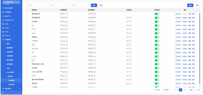 资产发现不仅仅是监控功能的一个方面,它更代表了监控能力的深度展现和进一步扩展。利用先进的资产探测技术和基础设施基因技术,这个平台能够自动识别各类IT资源,快速生成一份详细的资源列表。通过精确配置探测和识别规则,它能够识别出关键业务链依赖的资产,并确定这些资产的防护优先级,使得资源管理更加高效和有序。