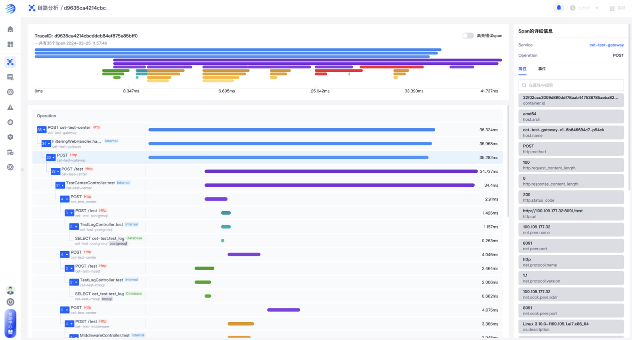 链路分析承载着丰富的分析与查看功能。用户可以从不同视角出发,深入剖析系统、服务、接口以及数据库等的运行状态,还能够轻松查阅链路、错误、span属性以及资源信息等上下文关键信息,从而全面掌控应用服务的运行细节,确保系统的高效稳定运行。