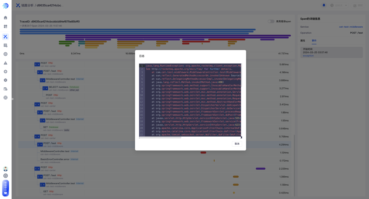 基于Opentelemetry的全链路监测,实现对整个应用程序的端到端监控和分析(包括应用间调用、应用内组件间调用),识别潜在的瓶颈和性能优化的机会,并将应用故障定位到代码级别。