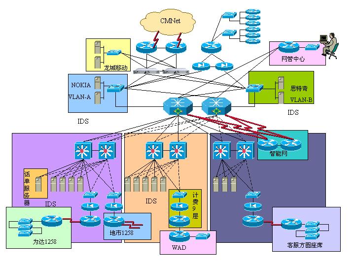 这种扩展模式带来的最主要的弊端是,随着新业务的不断增加,必将导致整个网络结构愈发复杂;而IP地址缺乏合理的划分方案,又会为新业务的拓展带来新的困难;最重要的是由于对全网没有集中、统一的管理机制,在故障定位、网络性能分析等方面缺乏有效地手段,会对整个网络的健康运行和扩展带来隐患。